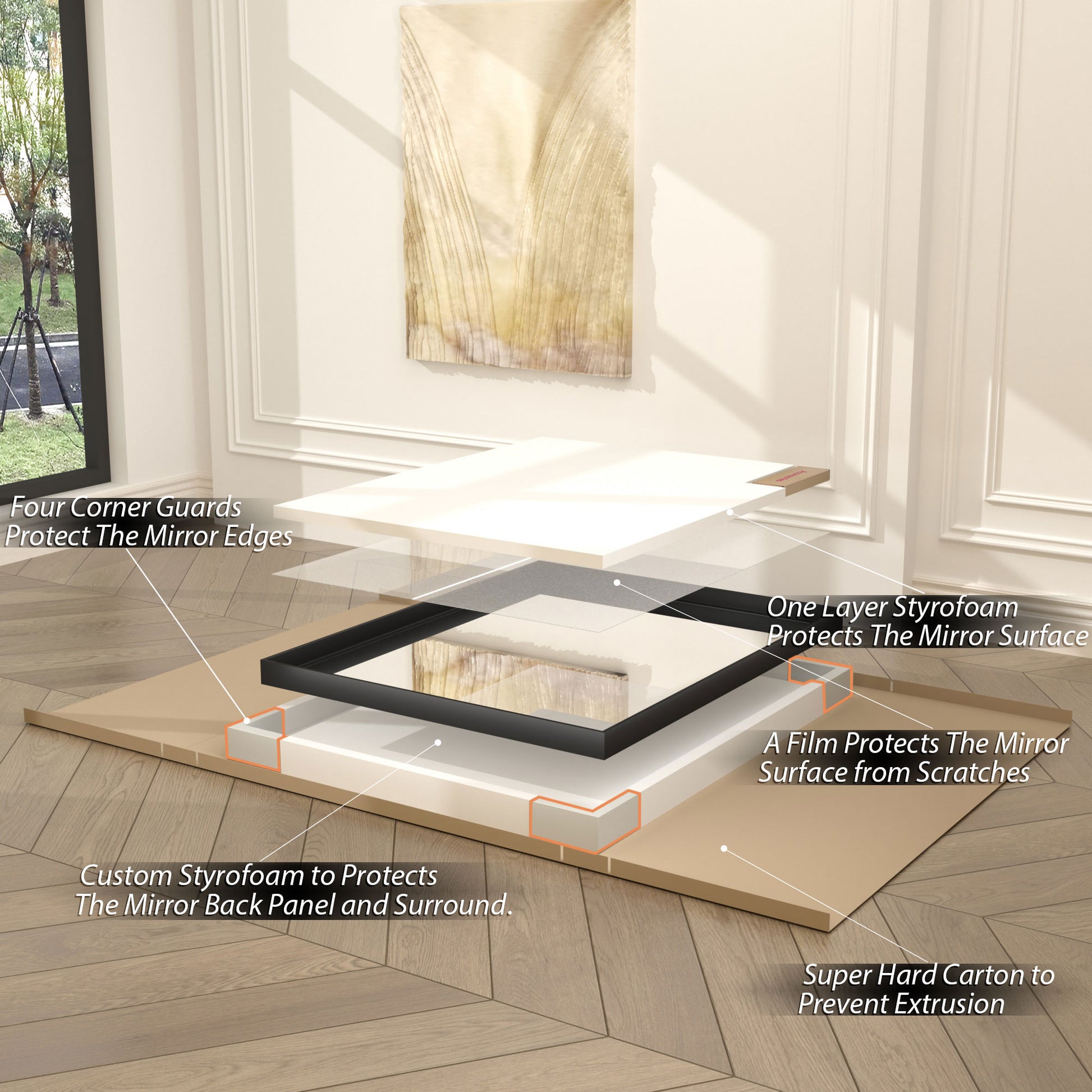 • Professional Packaging: Each mirror is made to a secret standard and secured with customized thick foam and sturdy corner guards in a carton box. Before delivered, it passed all rigorous tests including dropping, impact test, etc. Only for you to provide the perfect mirror.