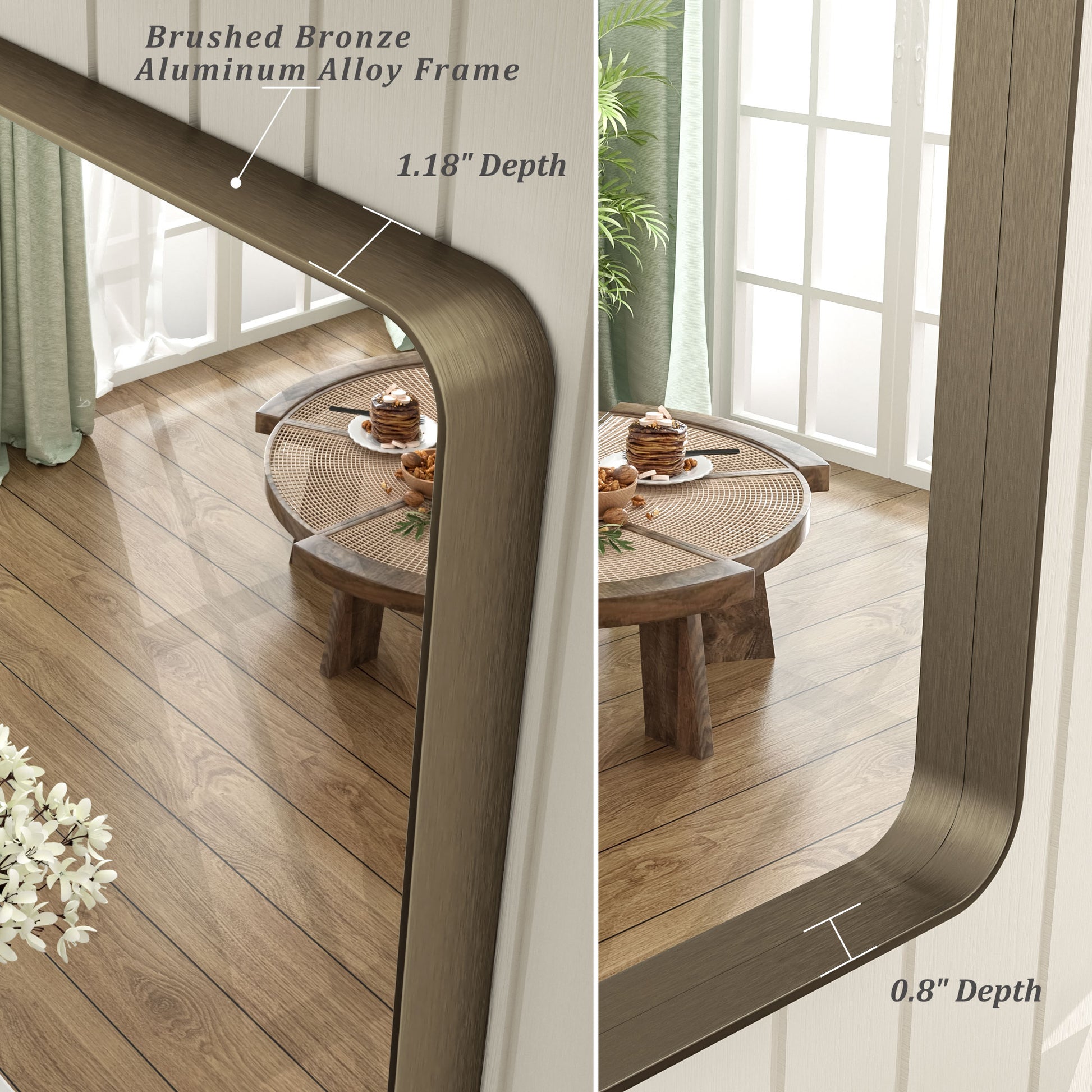 • Clear Reflection & NO Distortion: Our mirror is designed with high-definition float glass to ensure 1:1 restoration of the real image, delivering a clear reflection with no distortion. (Please remove the glass protective film before use.)