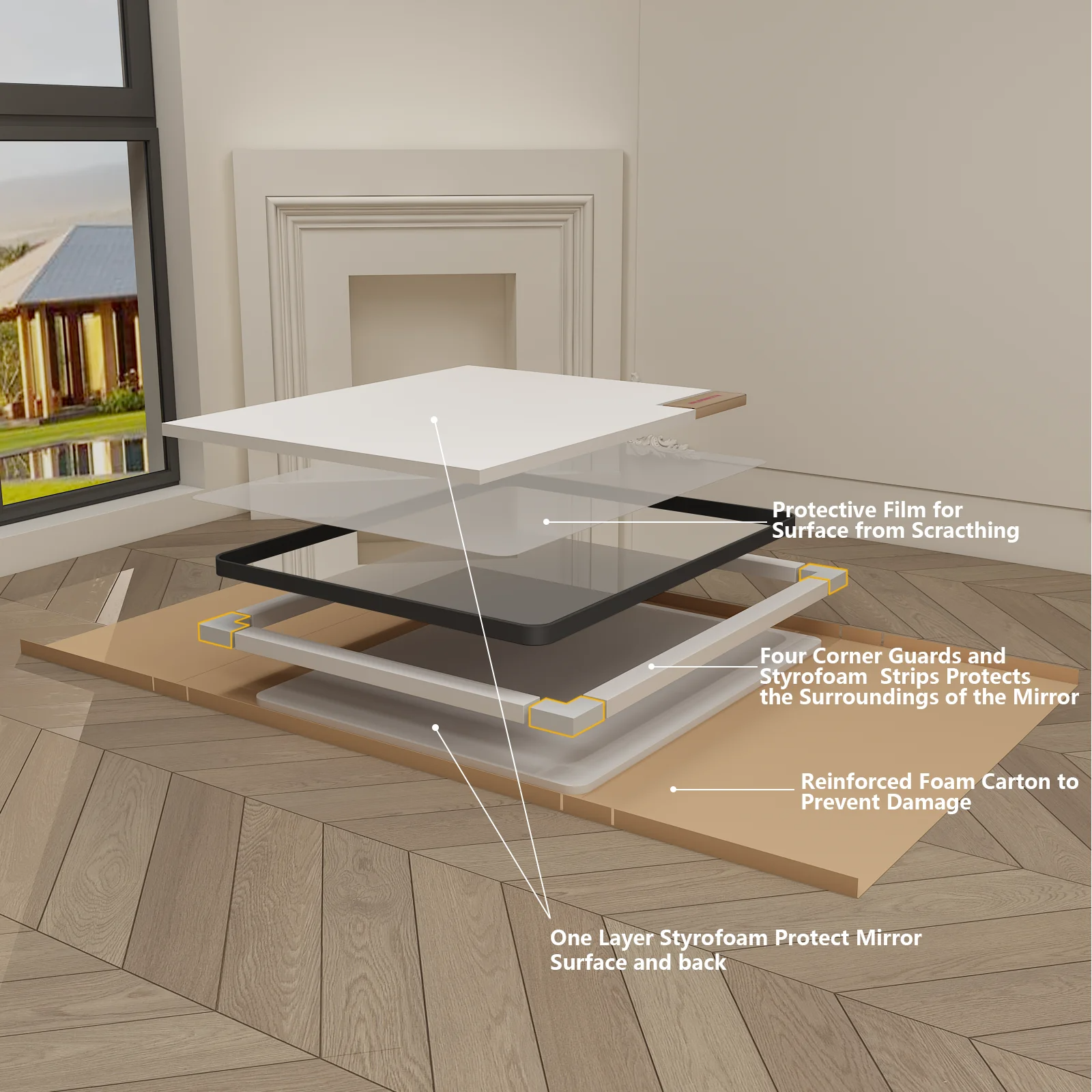 • Professional Packaging: Each mirror is made to a secret standard and secured with customized thick foam and sturdy corner guards in a carton box. Before delivered, it passed all rigorous tests including dropping, impact test, etc. Only for you to provide the perfect mirror.